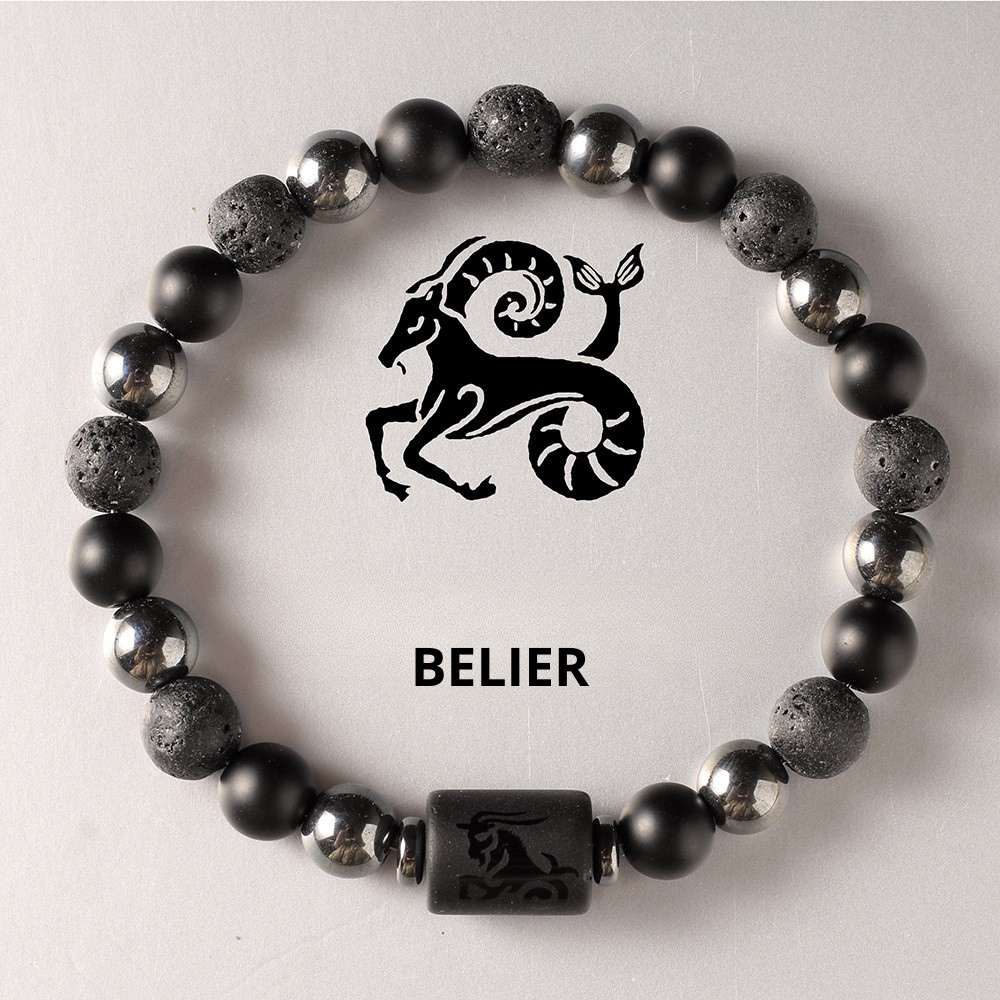 Bracelet signe astrologique pierre volcanique belier